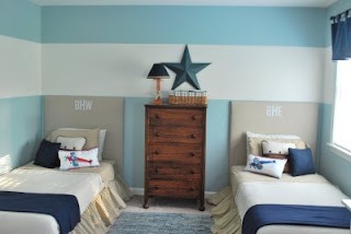 Just to prove my point........OK.....doesn't this look like a Pottery Barn photo? Well it's not.........it's her boy's bedroom. I could just die over those head boards. SHE MADE THEM! Visit her site and she'll tell you how. Just tell me that they are not the ones making the beds? I don't think I can take it.